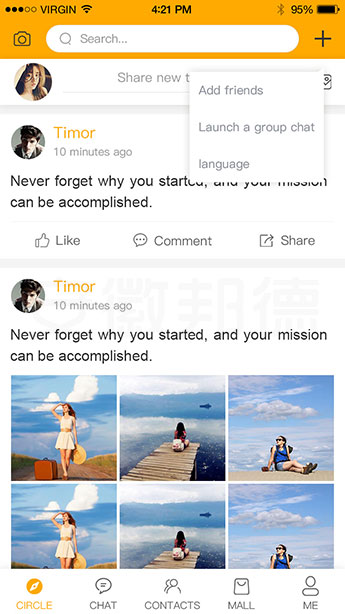 - YOUMEPASS你我通集大众的分享,文章的分享,个人的新鲜事物的分享,图片的分享,每日的新鲜事物的分享。广告宣传等活动。人民的移动聊天,人与人之间的钩通与联系,双方发信息或者语音,也可以视频通讯,图片的往来,文件的往来等。朋友群的钩通与联系,新鲜事物的分享。组织团队会议等,地图导航等。想创意团队为客户提供APP效果图设计,APP接口开发,APP程序开发和数据库开发,每位客户均按照需求提供定制设计开发,签订合同,分期付款,并提供完善的售后技术支持。以下APP案例效果图我们为了防盗打了水印,APP案例可提供演示和详细功能开发清单,详细内容可以咨询想创意团队客服人员微信!