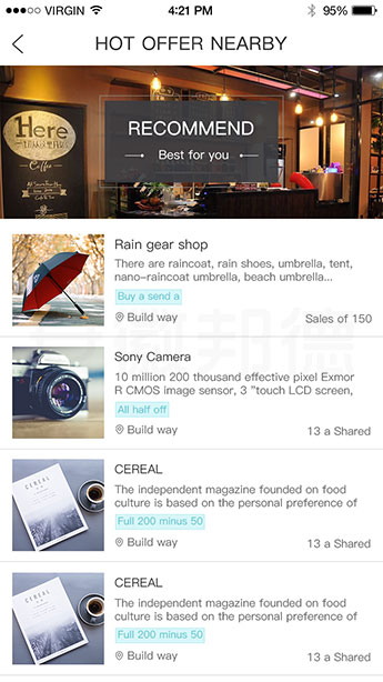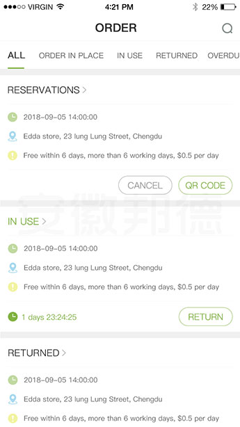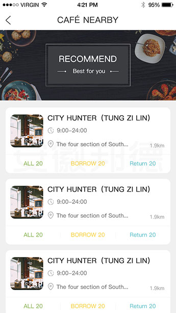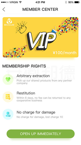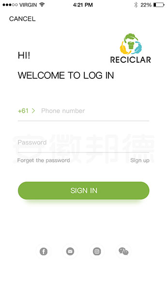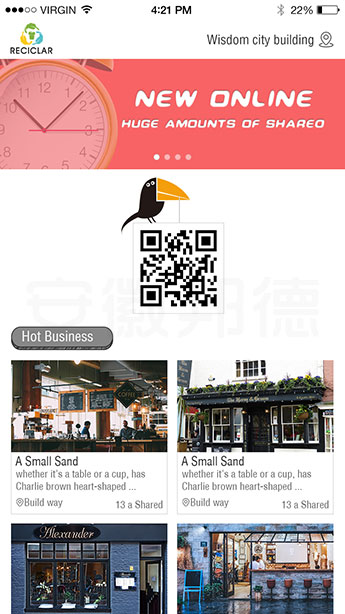 RECICLAR-专注于合作商家共享用品的使用归还的APP。想创意团队为客户提供APP效果图设计,APP接口开发,APP程序开发和数据库开发,每位客户均按照需求提供定制设计开发,签订合同,分期付款,并提供完善的售后技术支持。以下APP案例效果图我们为了防盗打了水印,APP案例可提供演示和详细功能开发清单,详细内容可以咨询想创意团队客服人员微信!