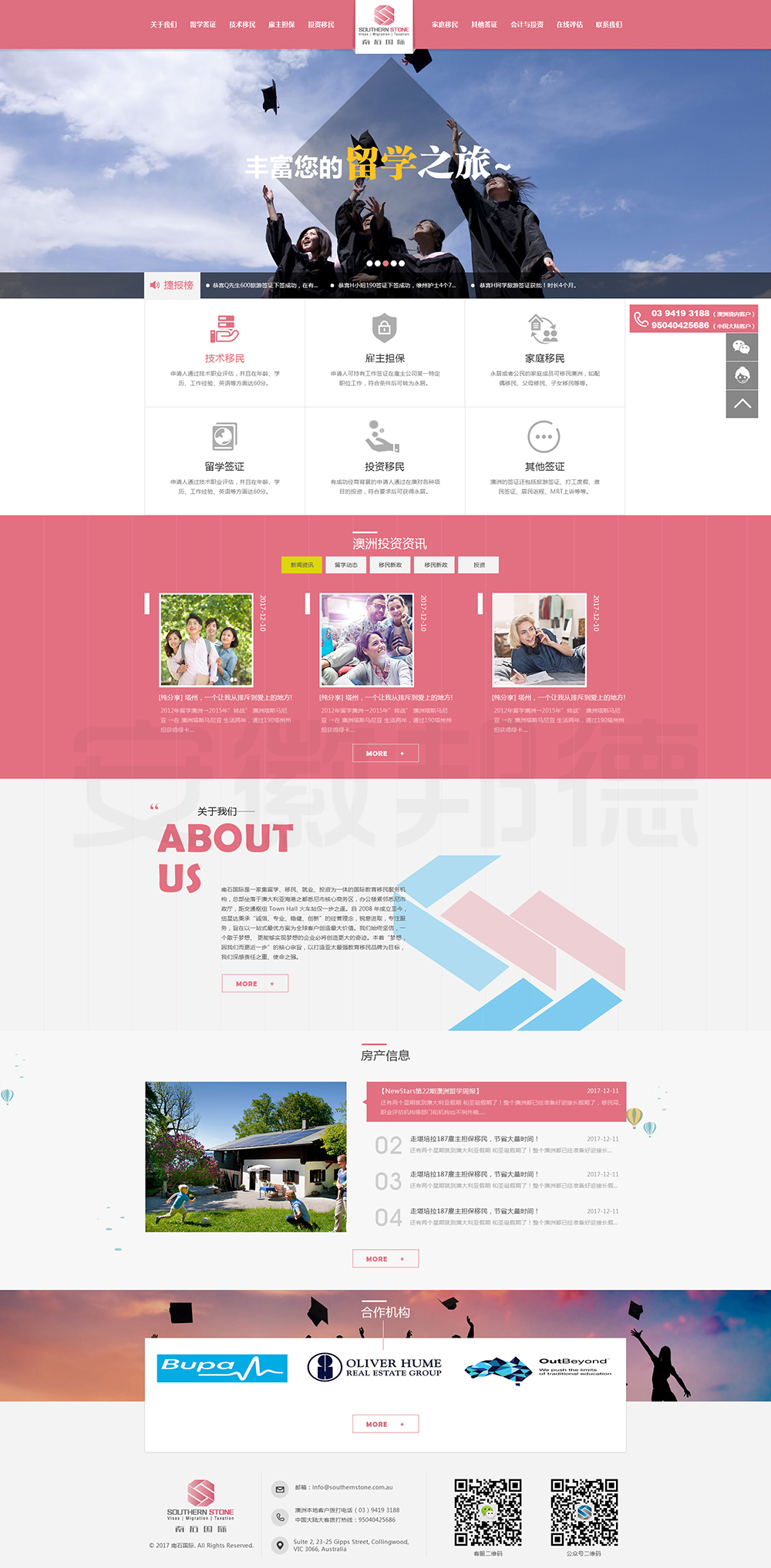 南石国际有限责任公司是一家经澳大利亚政府批准,在移民代理注册管理部门(OFFICE OF THE MARA)备案注册的移民咨询公司。我们的团队由专业的移民代理、留学教育代理、投资理财专家和从业经验丰富的员工组成。澳大利亚移民法条款繁多,内容复杂且瞬息万变;我们的团队严格遵守职业行为守则,时刻关注澳洲移民政策的最新动态,针对每一位客户的特点和要求量体裁衣,提供最便捷、最准备、最及时的签证和移民方案。想创意团队为客户提供网站效果图设计,